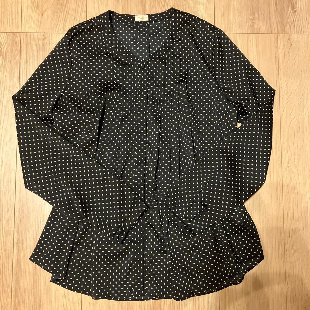 AOKI LES MUES Femme半袖ドットブラウス黒L