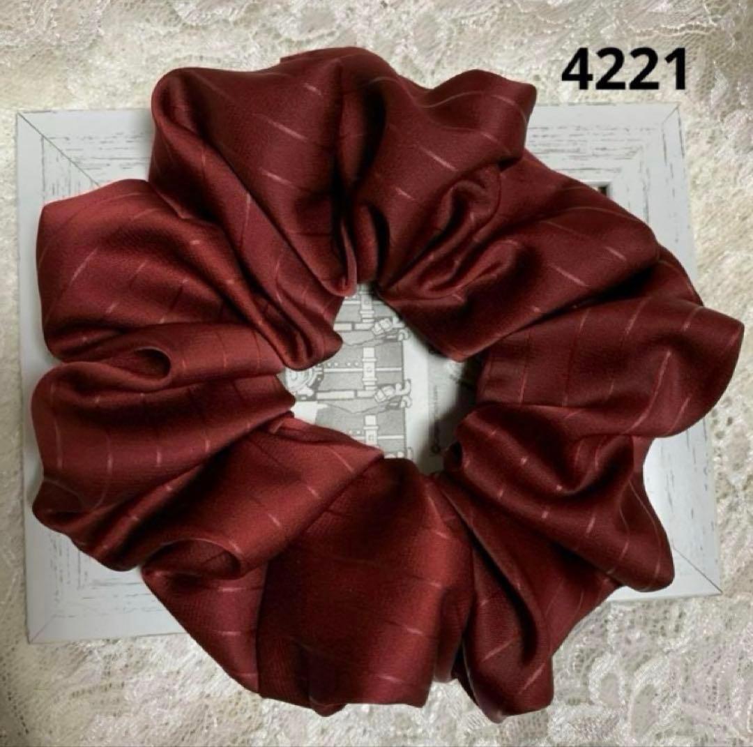 シュシュ4221ワインカラーのストレッチサテン❣️ストライプ❣️