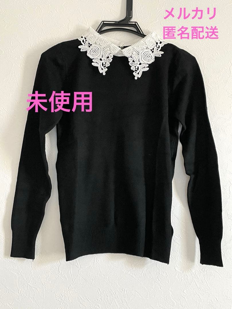 【未使用】MISCH MASCH 襟元レース 長袖セーター ブラック 黒