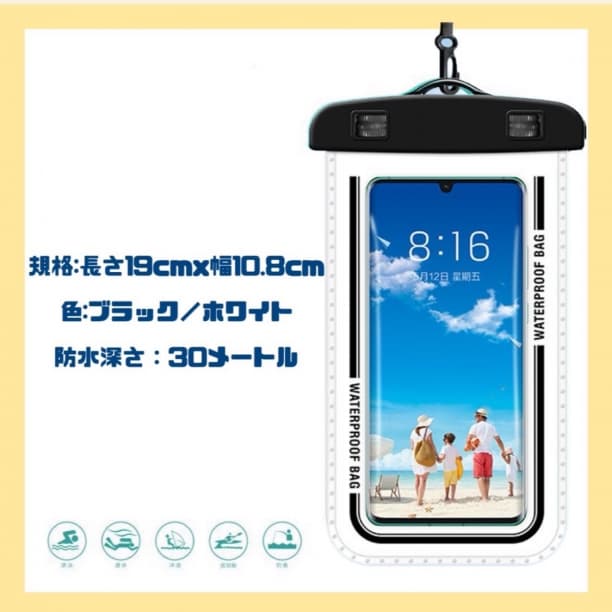 〇スマホ 防水ケース 黒 ブラック ストッラップ付き IPX8 水中撮影