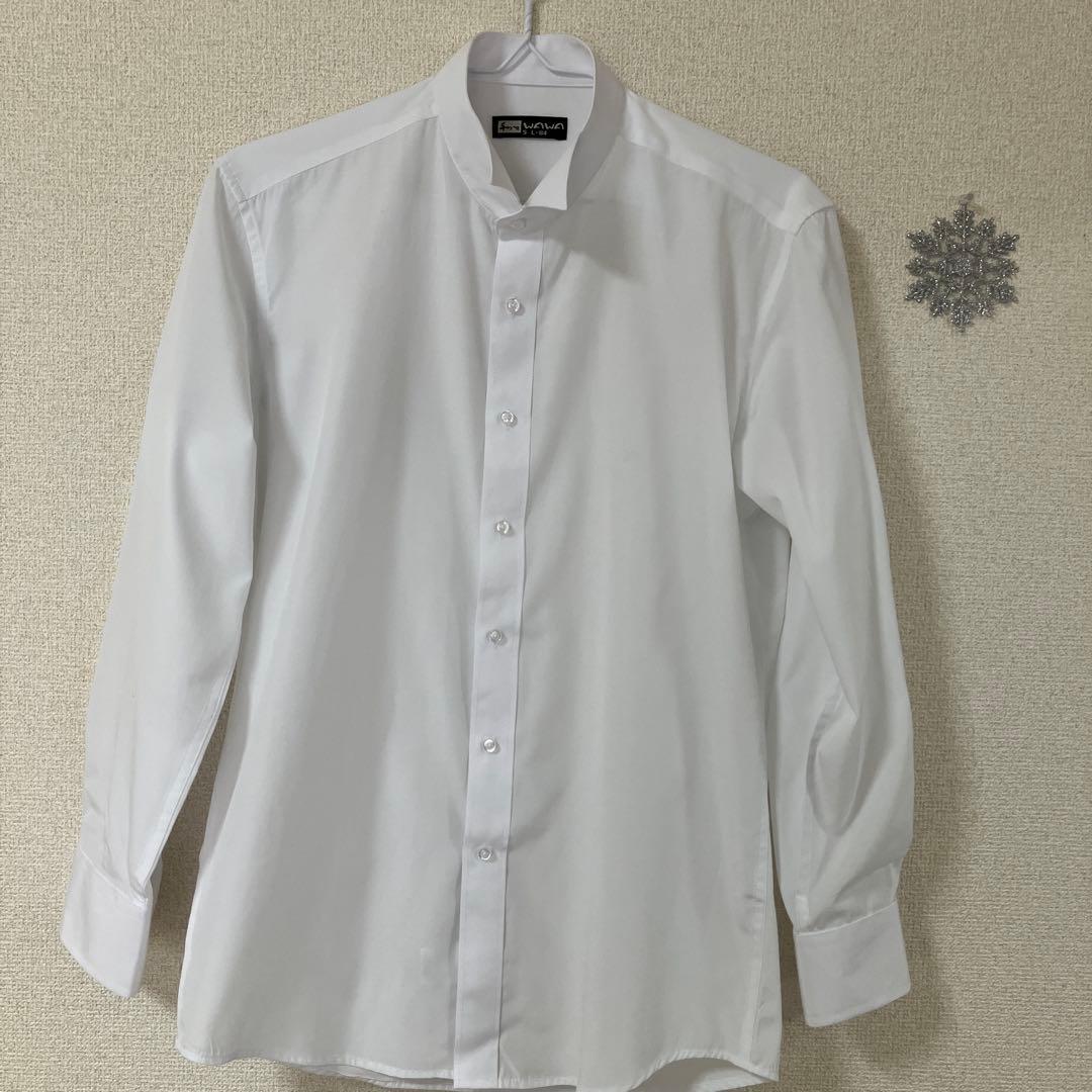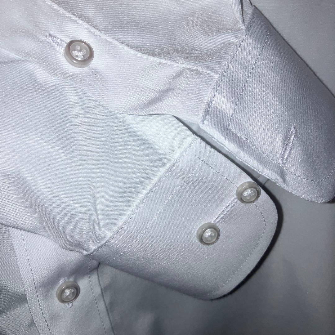 ホワイト 長袖 ボタンアップシャツ