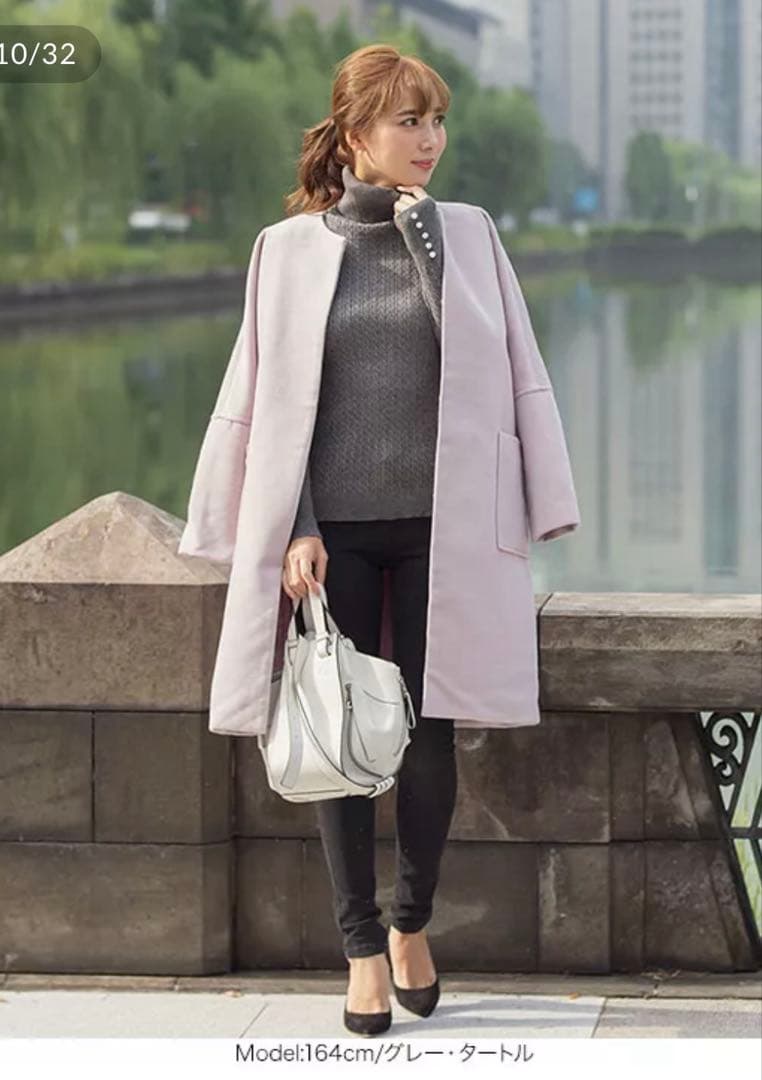 神戸レタス 岡部あゆみ パール ニット ハイネック グレー