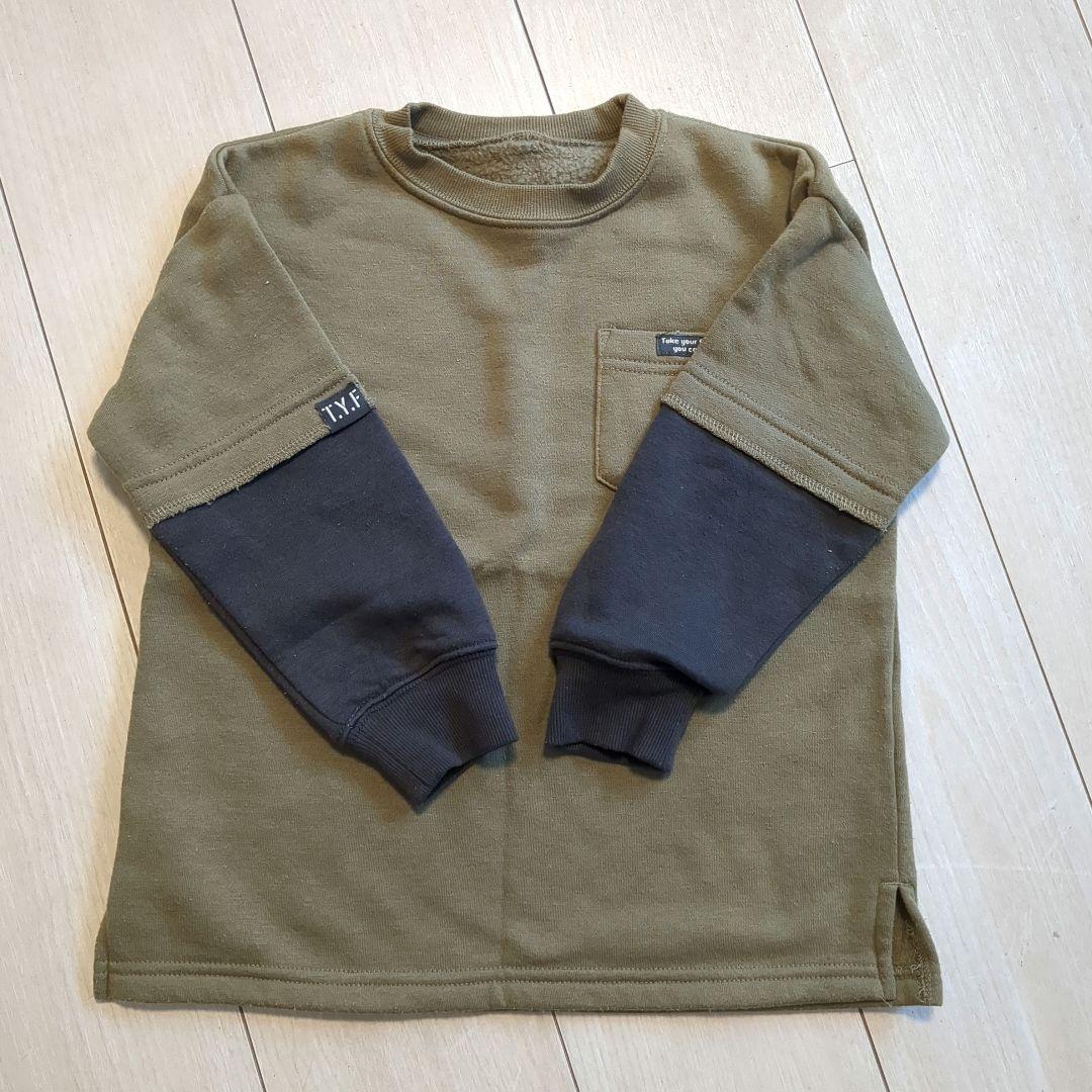 TY.F ポケット付き長袖トレーナー オリーブグリーン