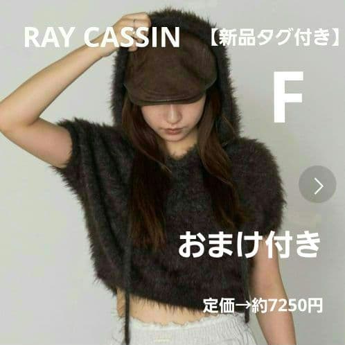 【新品タグ付き】RAY CASSIN レイカズン シャギーフード半袖ニット 茶色