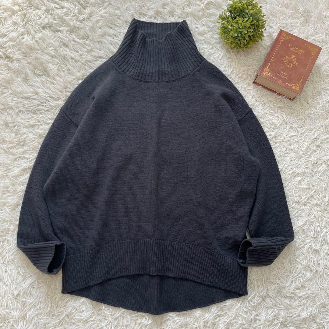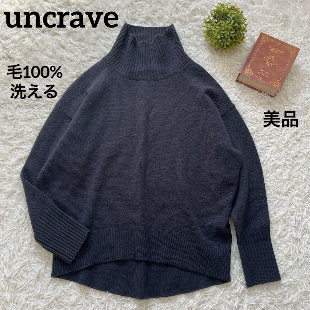 美品✨uncrave ニット ハイネック 洗える ウール100% ダークグレー