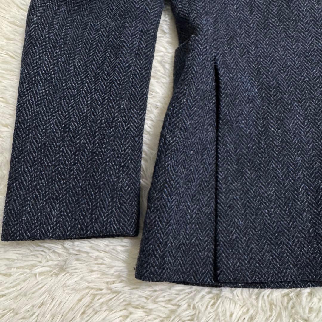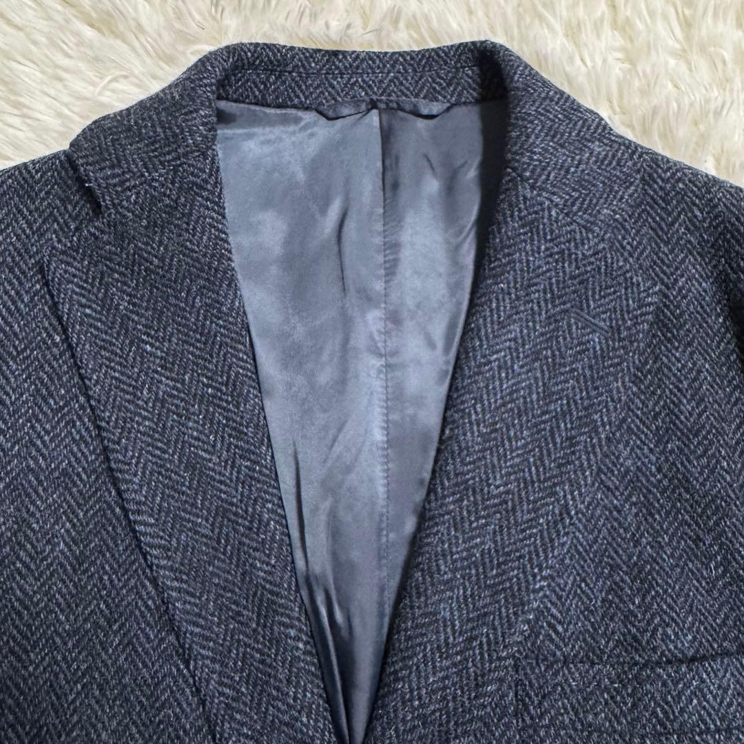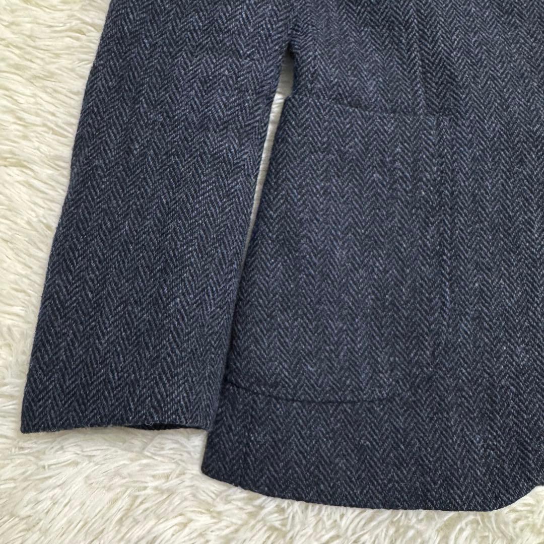 【美品】ハリスツイード テーラードジャケット ヘリンボーン パッチポケット 紺