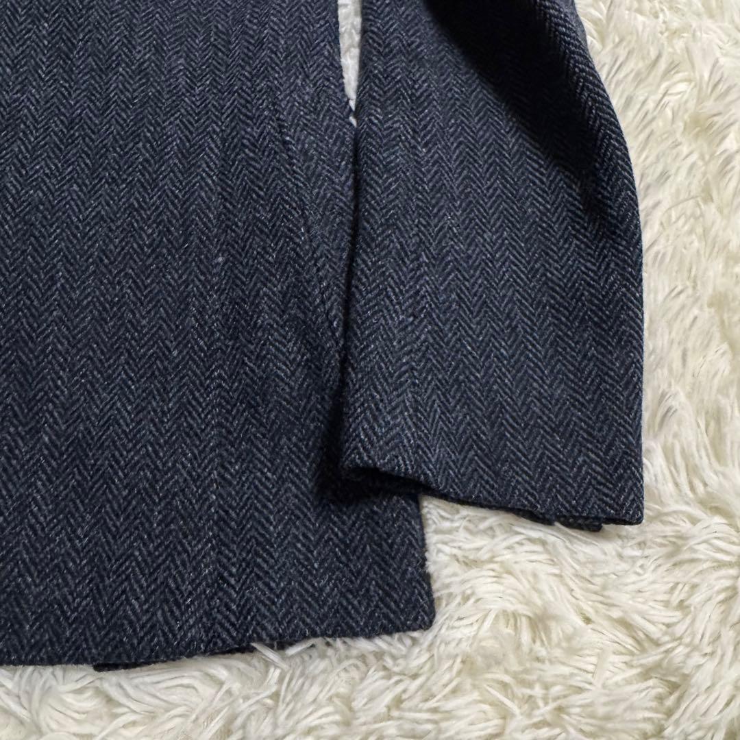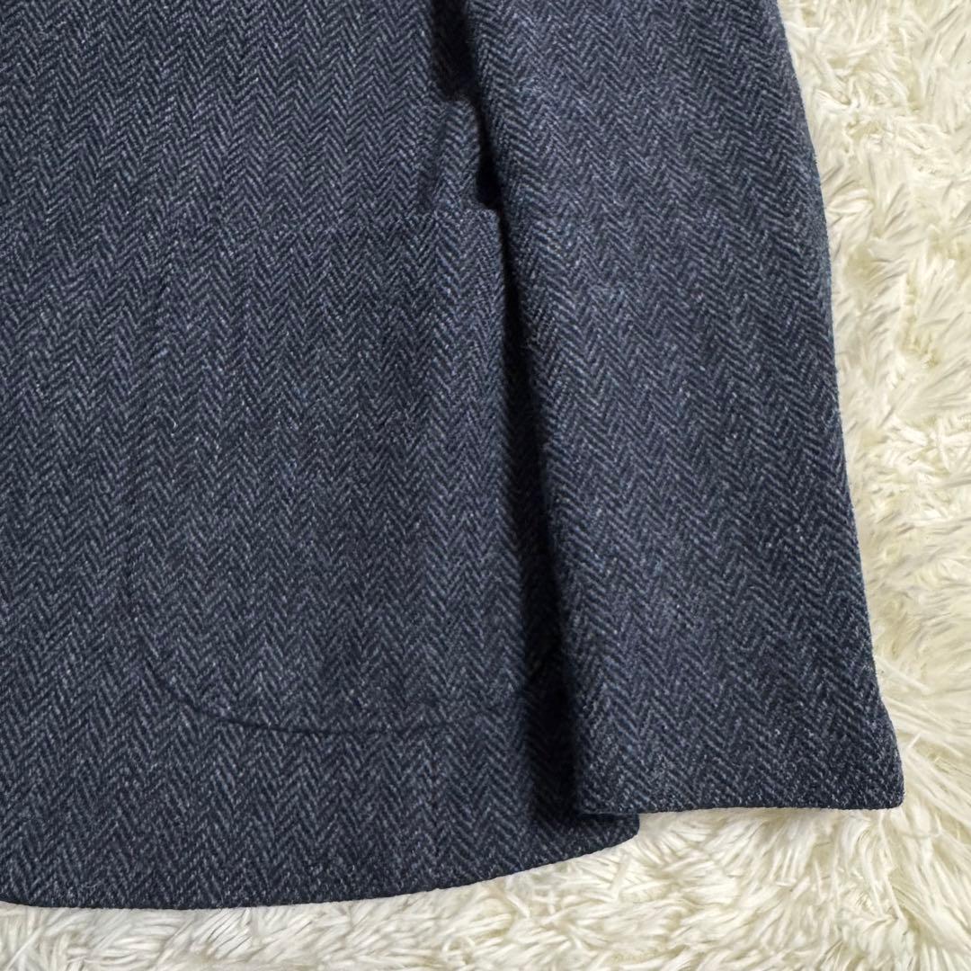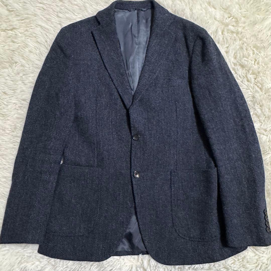 【美品】ハリスツイード テーラードジャケット ヘリンボーン パッチポケット 紺