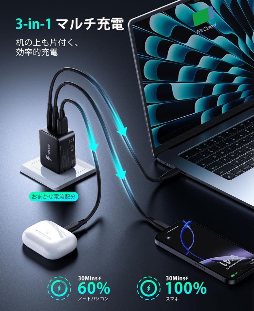 YOCOEI 67W 急速充電器 USB-Cケーブル2本付