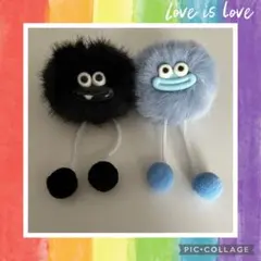訳あり【新品】ソーセージリップモンスター キーホルダー ふわふわ 2個 黒&水色