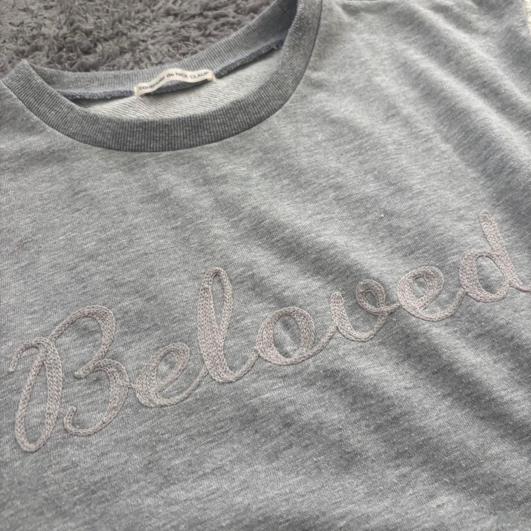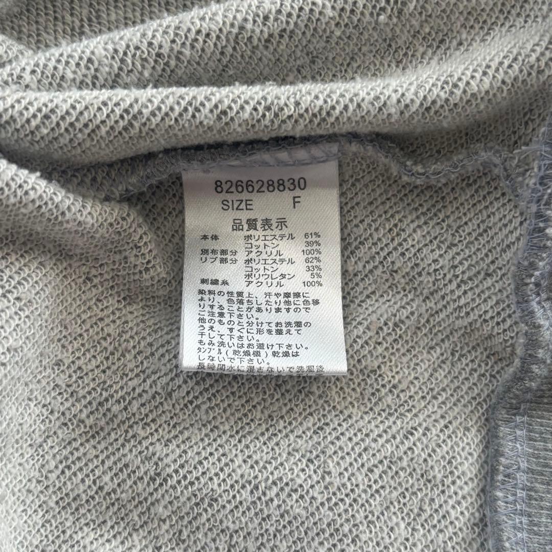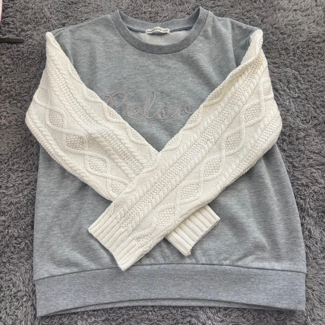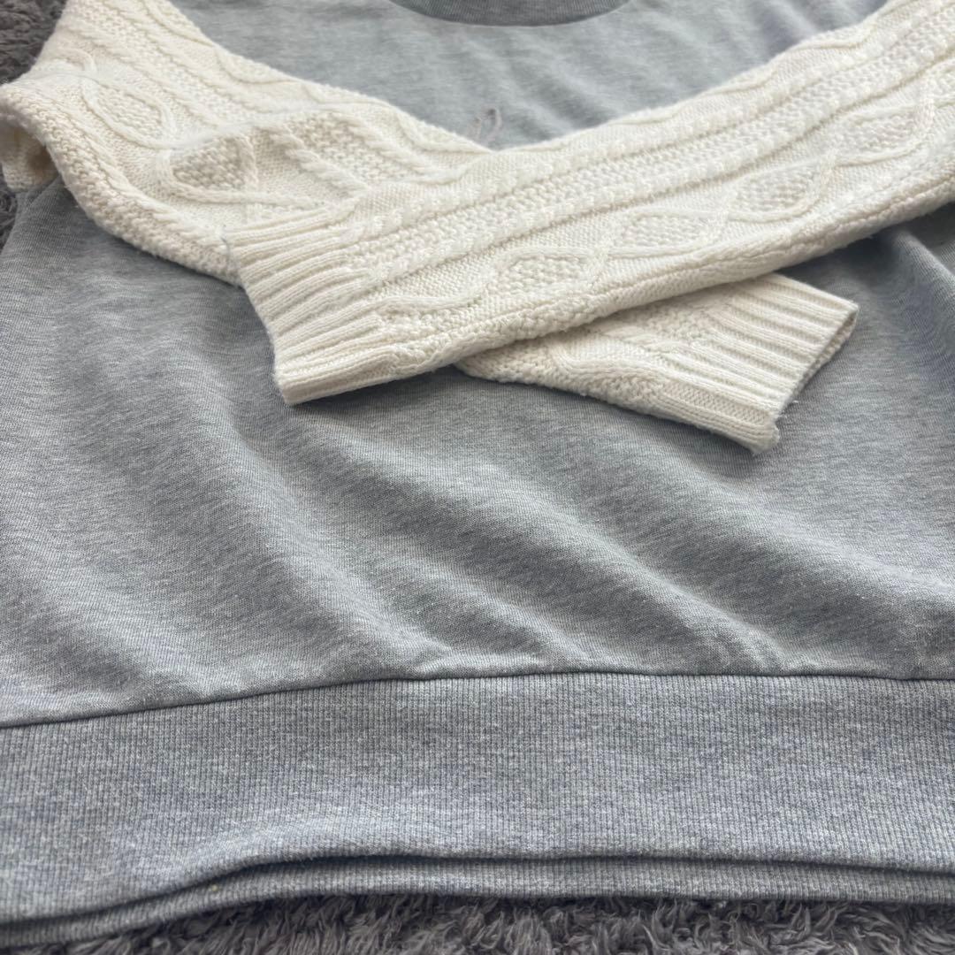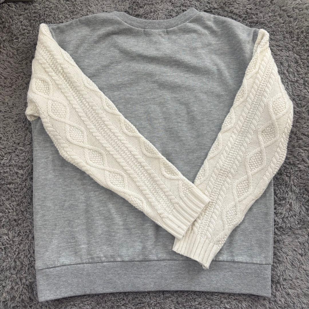 グレー×ホワイトケーブルニット袖長袖トレーナー(F)