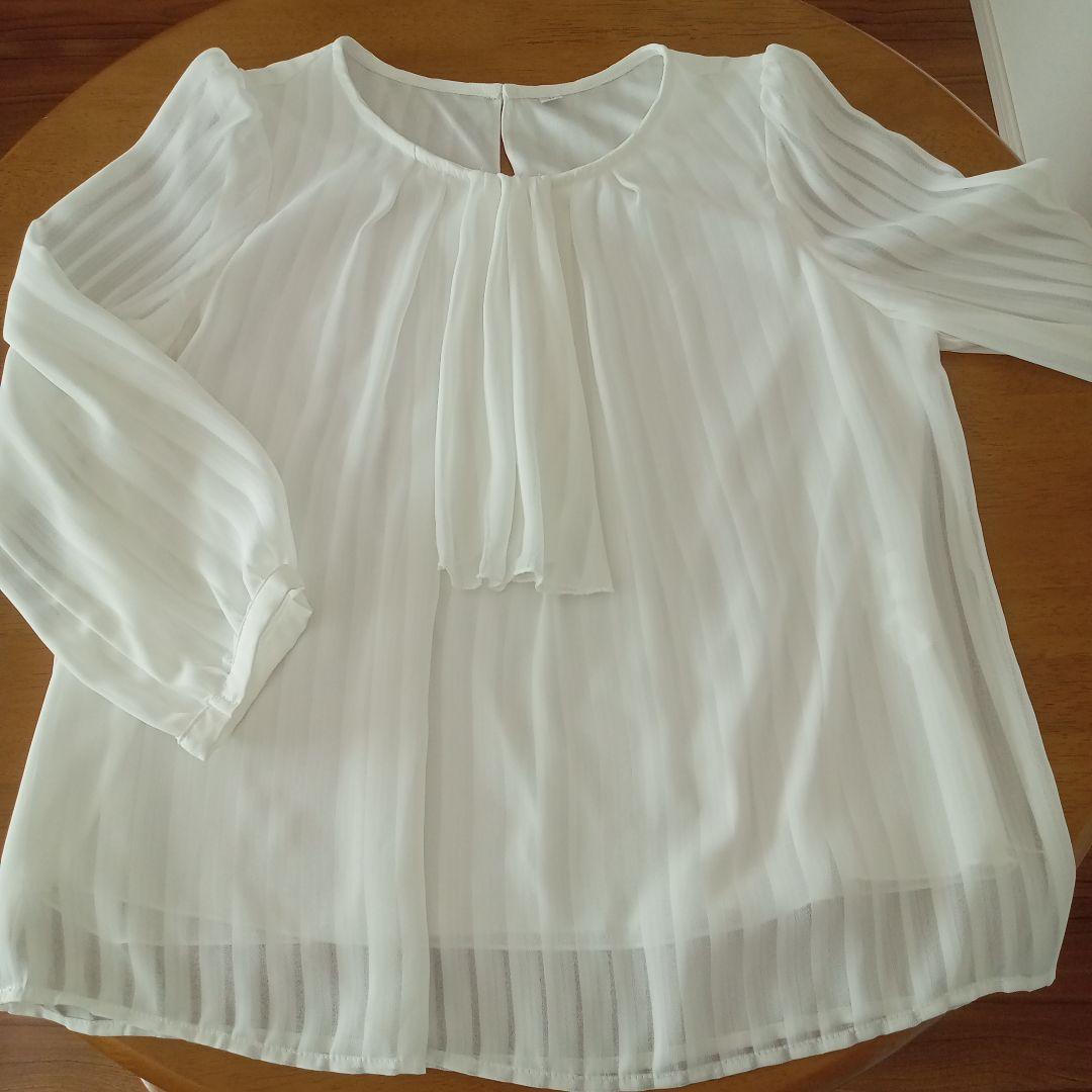 ホワイト プリーツデザイン 長袖ブラウス Lサイズ