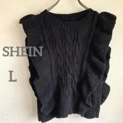 SHEIN ブラック フリル付き ケーブル編み ニットベスト 【 L】