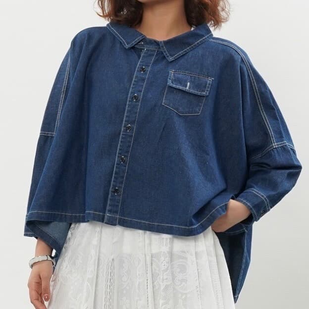 【新品】ドルマンスリーブデニムシャツ 長袖 Gジャン シャツジャケット ブルー