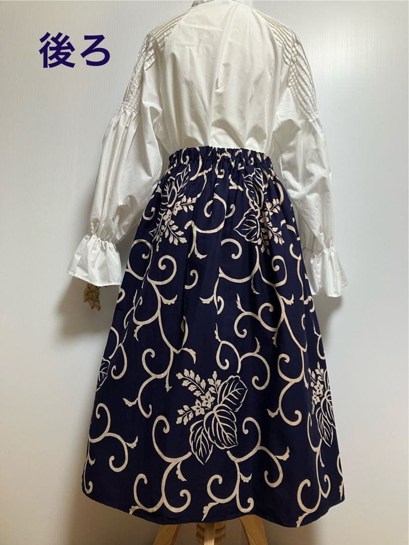 古布 風呂敷リメイク 柿渋染めスカート 桐唐草模様 低身長〜160cm向き