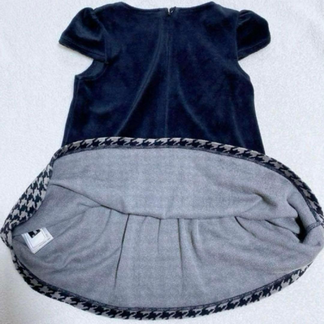 《美品》comme ca ism 80cm 千鳥柄ベロアワンピース ブラック