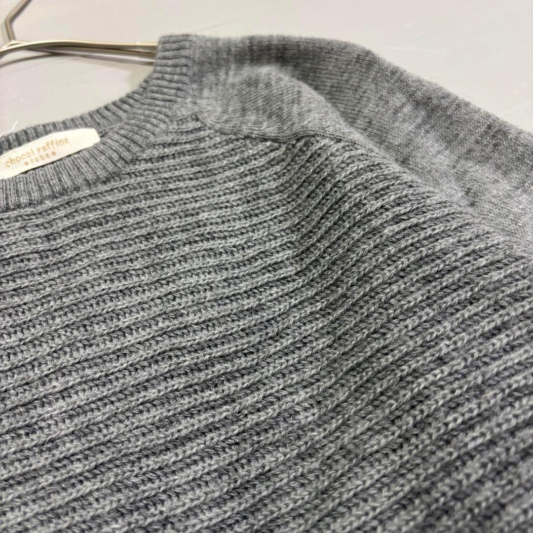【ショコラフィネローブ】長袖ニット 薄手 毛混 ラグラン袖 グレー 無地(F)