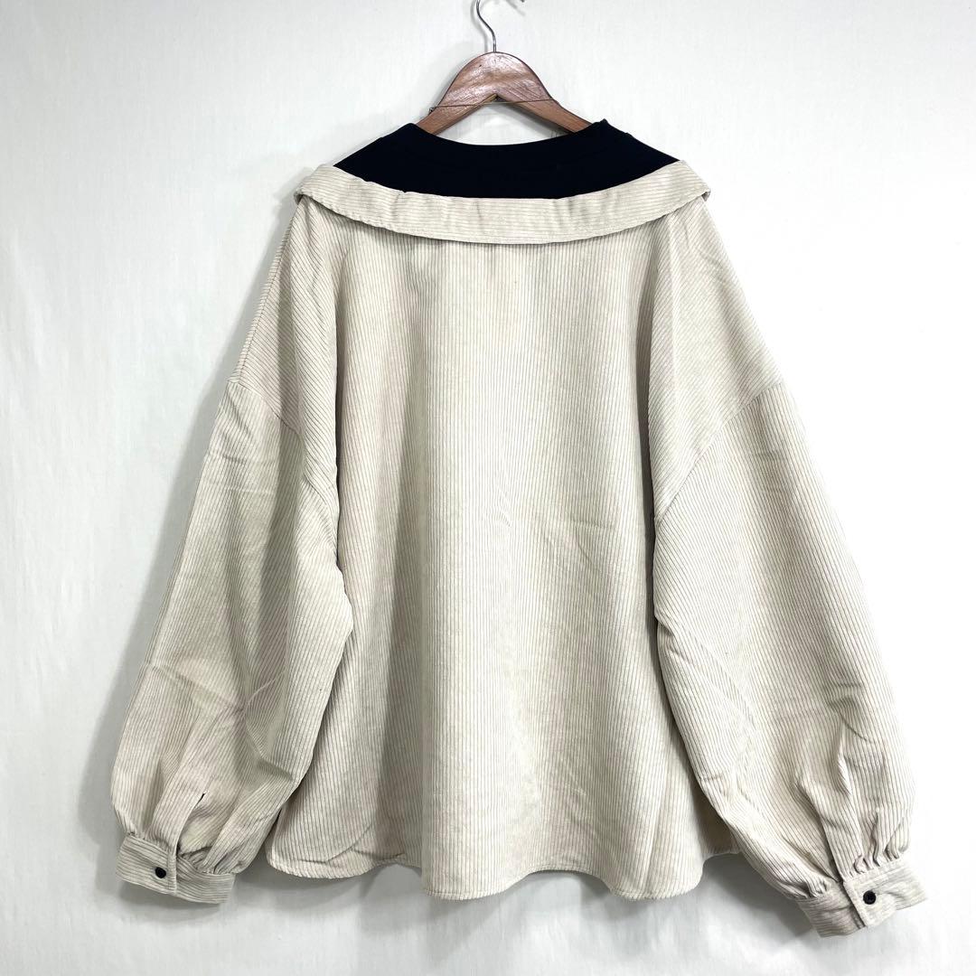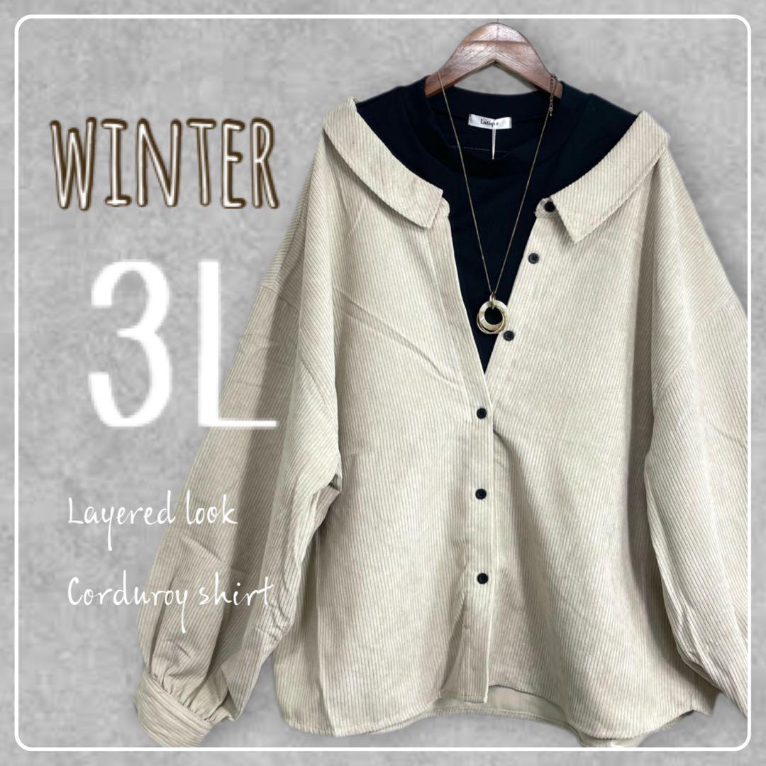 新品♪3L大きいサイズ♪インナー重ね着風コーデュロイシャツ♪オフ