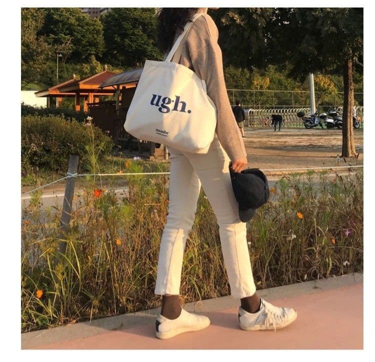 トートバッグ エコバック 英字 ロゴ 可愛い シンプル 韓国 キャンバス マチ
