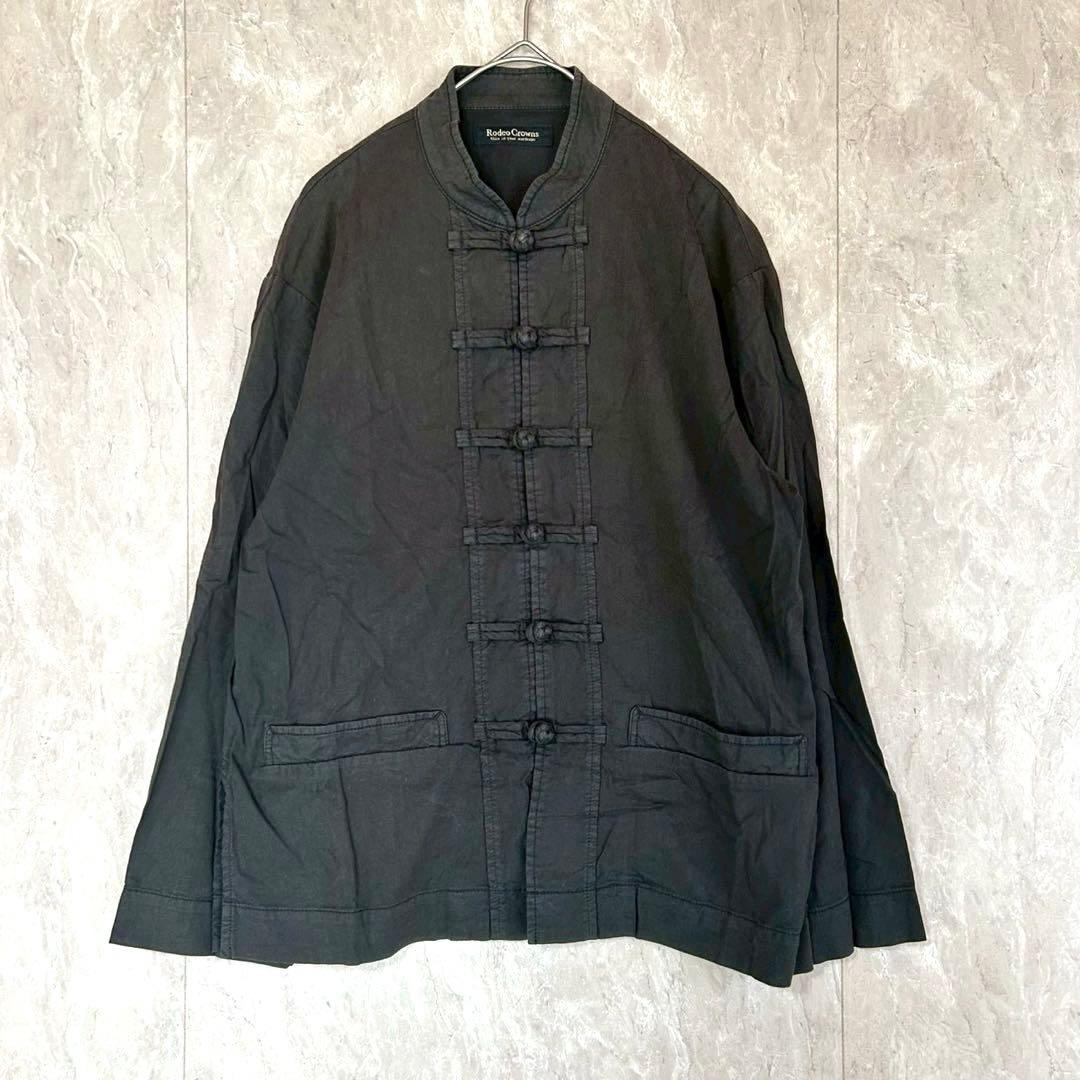 【ロデオクラウンズ】チャイナシャツジャケット F ブラック 長袖 綿混 スリット