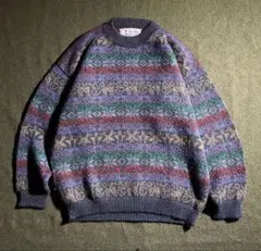 ☆プリミティフ【4L】紫系 総柄 長袖セーター ヴィンテージ ウール100