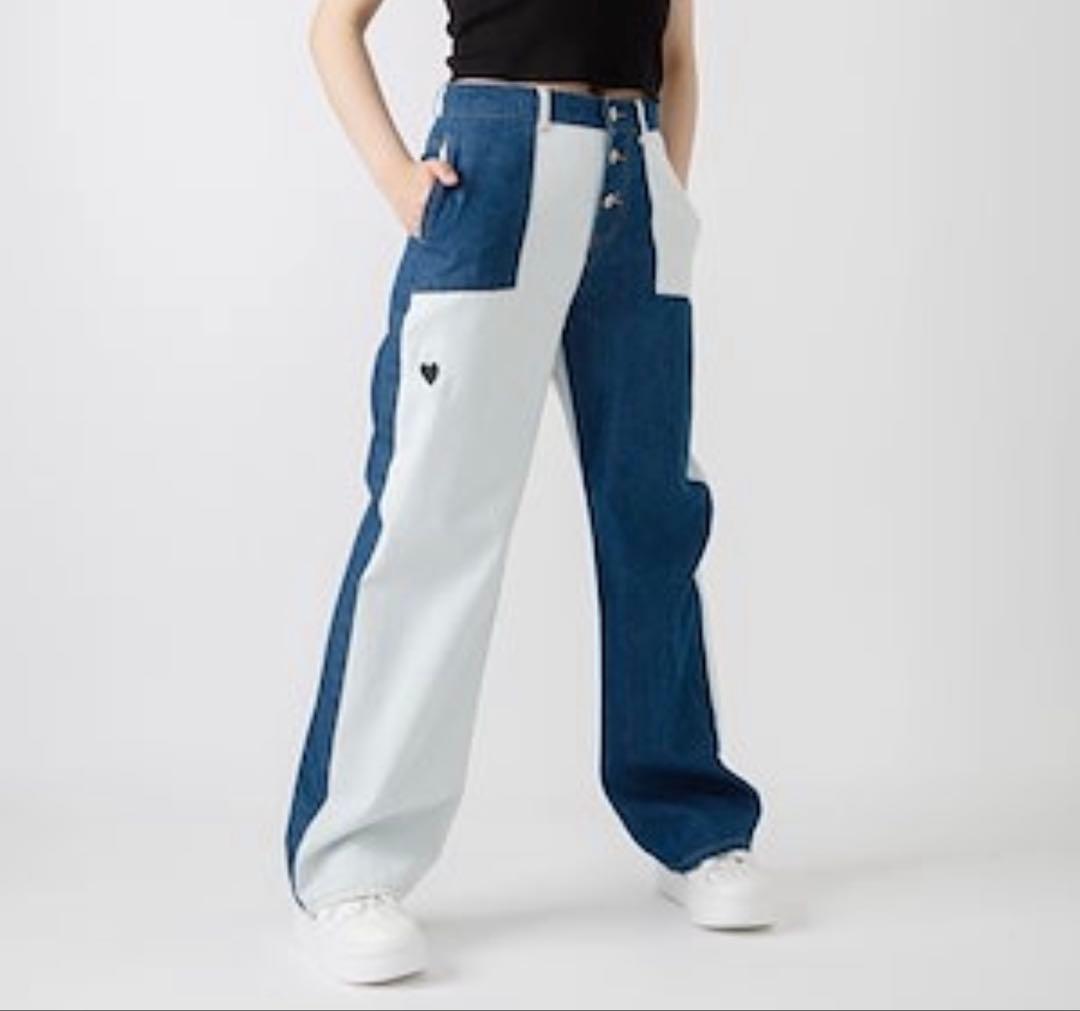 BLACK HEART ストレートデニムパンツ Lサイズ バイカラー