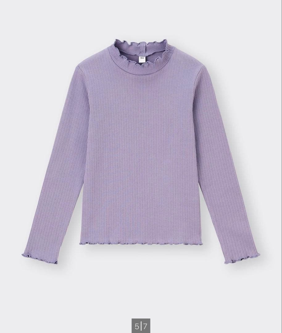 GU 長袖 カットソー 130 薄紫 フリル ハイネック