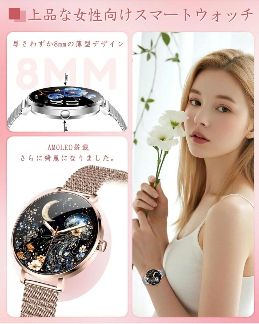 【元値6980円・美品!】スマートウォッチ シルバー 盤面豊富