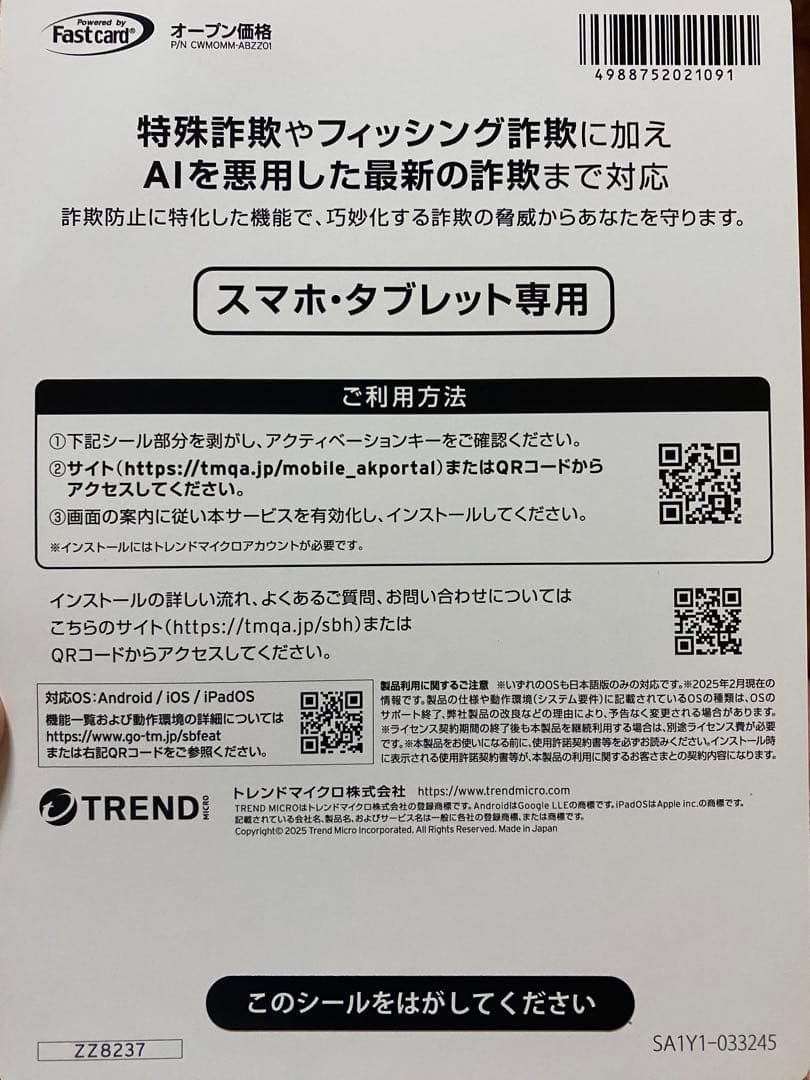 トレンドマイクロ 詐欺バスター 1年版 値下げ