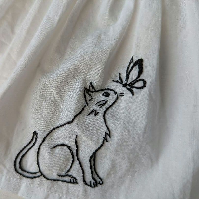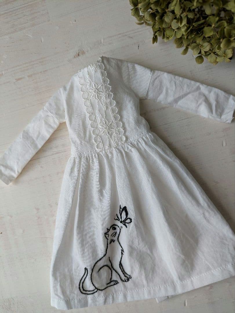 ブライス アウトフィット 猫と蝶 刺繍 ワンピース つけ襟 バブーシュカセット