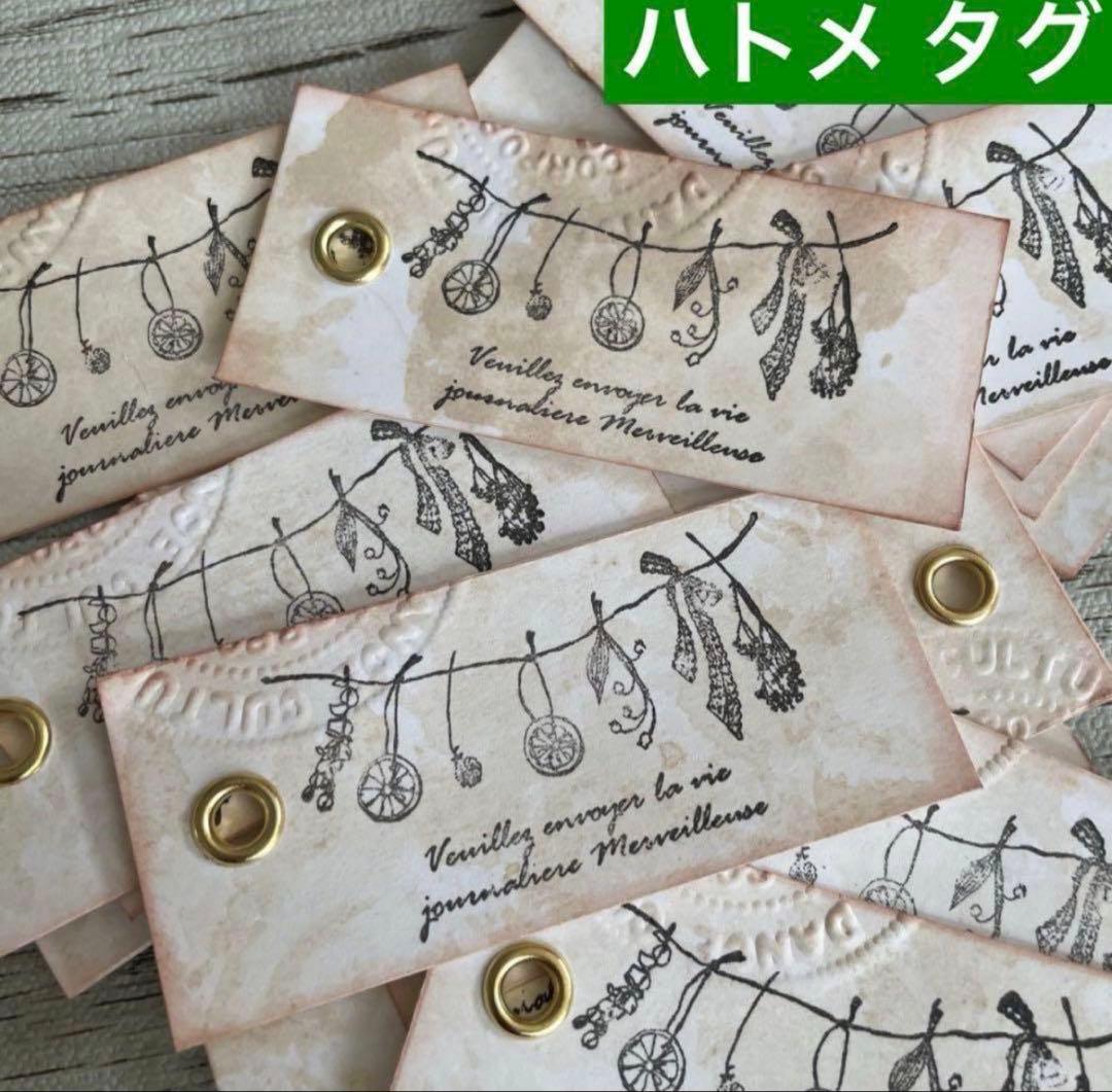 アンティーク タグ ハトメ 珈琲染め コラージュ ジャンクジャーナル №923H