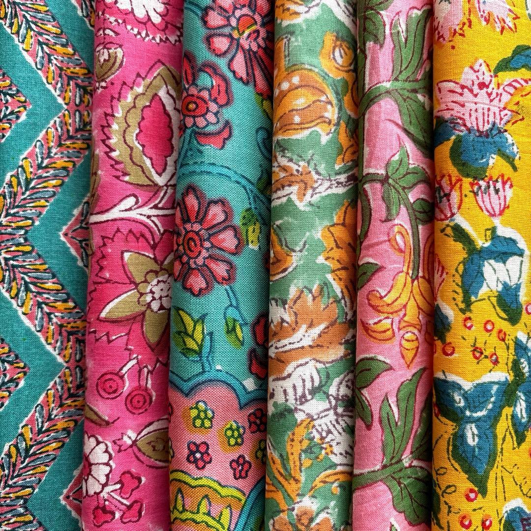 ブロックプリント インド綿 ハギレ アジアン エスニック ボタニカル 6枚セット