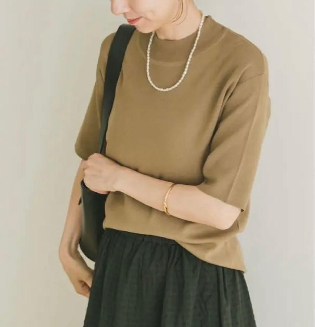 ブラウン ソウバリハンソデニット 五分袖 新品未使用タグ付