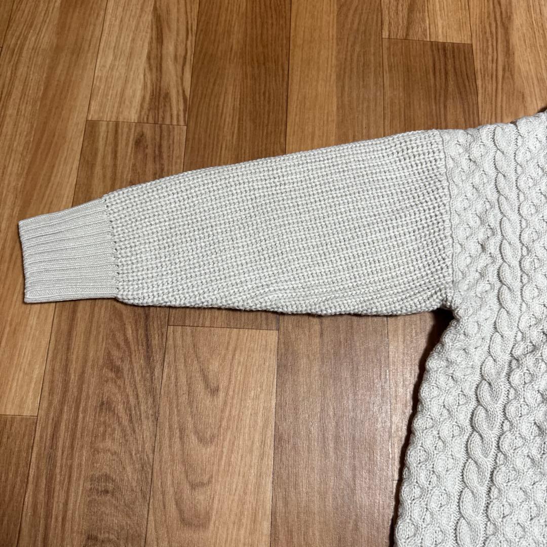 【ナノ・ユニバース】ミックス編みニットプルオーバー オフホワイト サイズ38綺麗