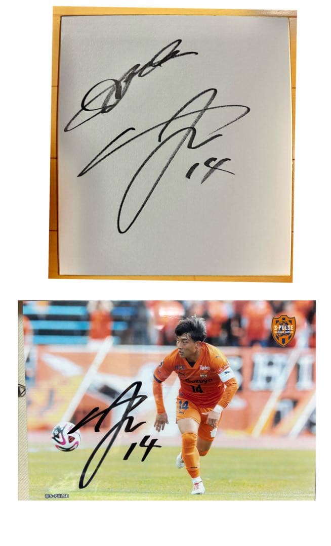 清水エスパルス 14山原怜音選手直筆サイン入り色紙、A4写真プリントサイン入り