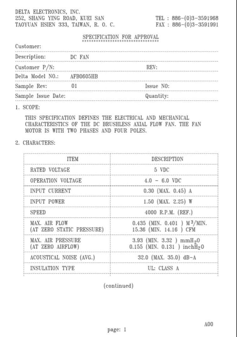 Delta AFB0605HB 6015 DC5Vファン0.45A 冷却 ファン