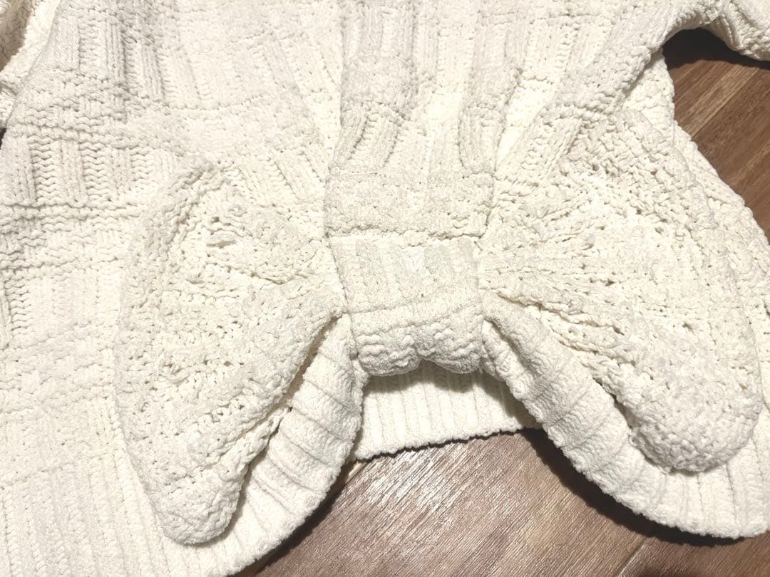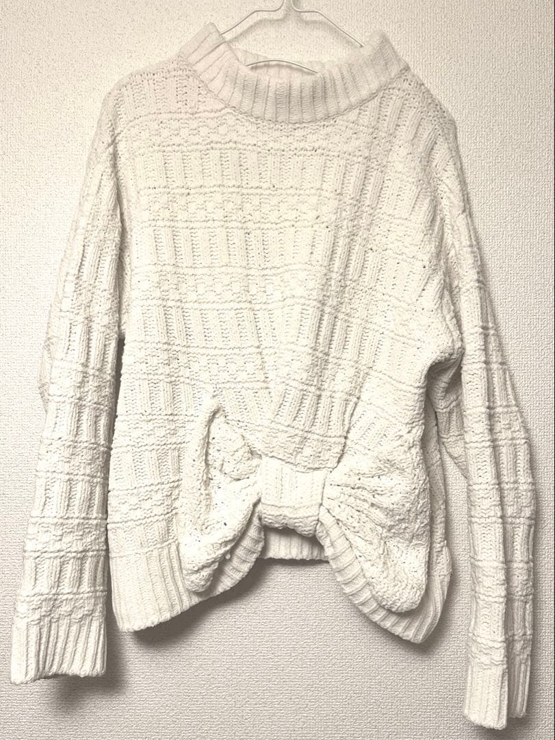 シュプリームララ ウエストBIGリボン付きハイネックセーターM/ホワイト