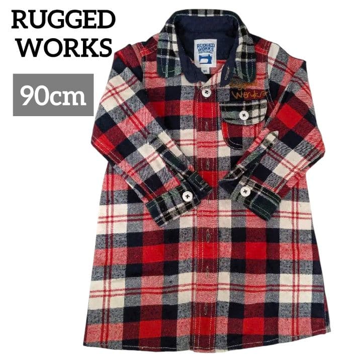 【美品】RUGGED WORKS チェックシャツワンピース 赤 90cm 冬