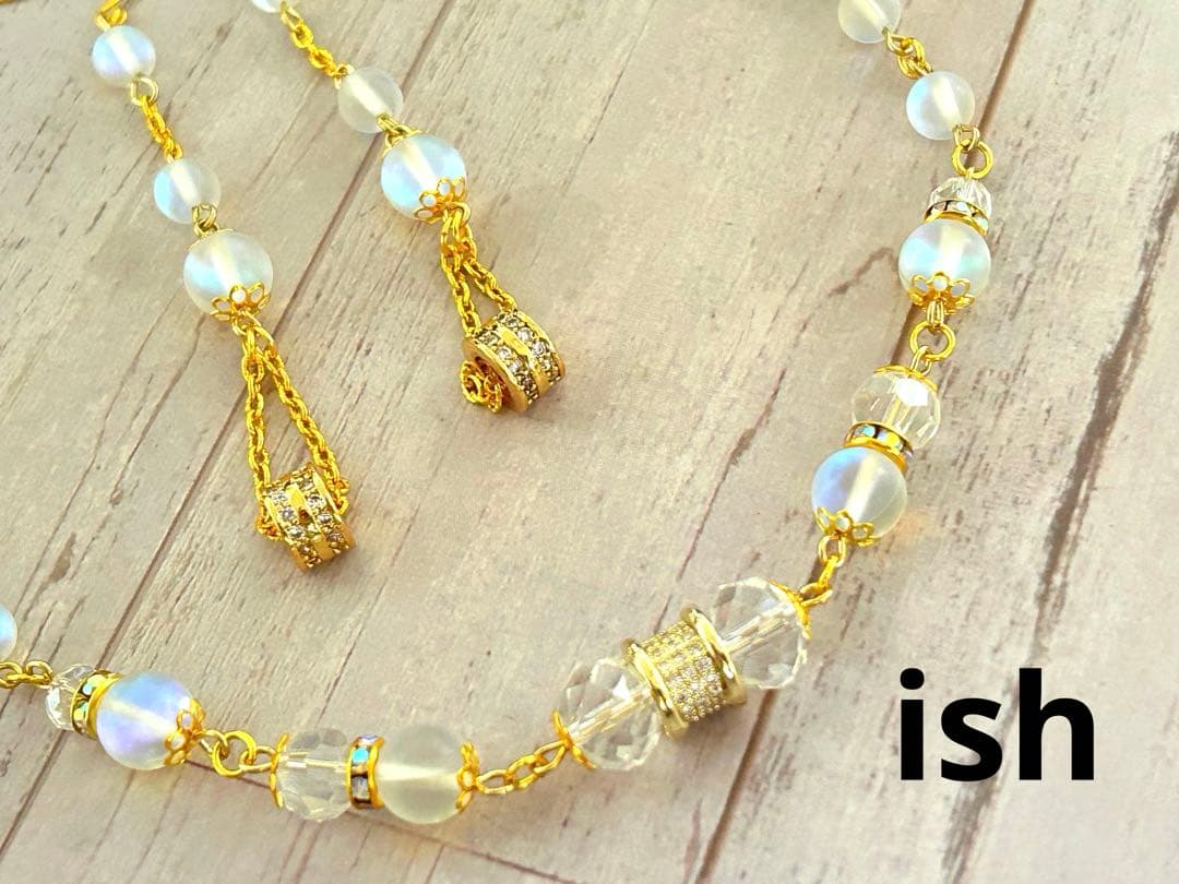 【C077】ishルナフラッシュ・ジルコニアロンデル・本水晶ネックレス&ピアス