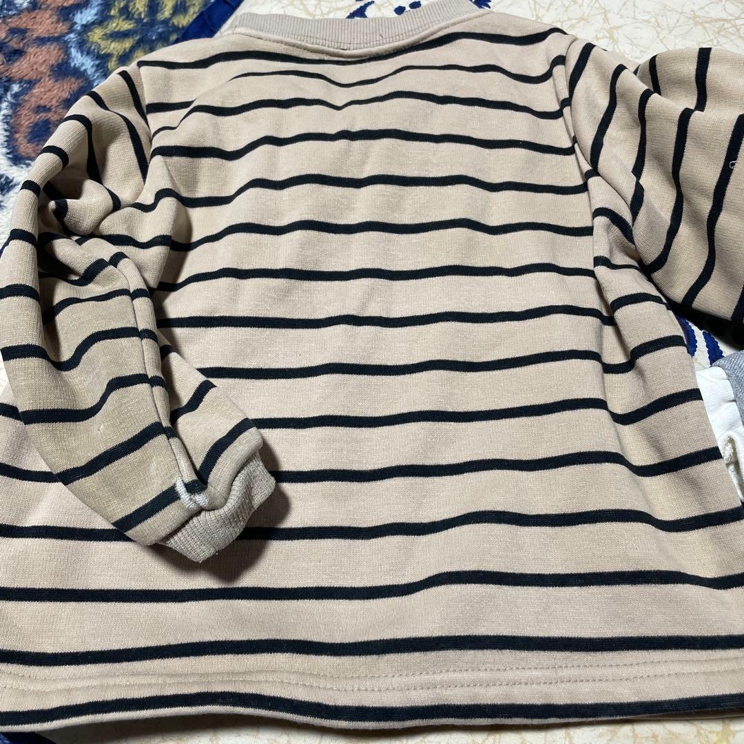 ストライプ柄/猫のイラスト裾がフリルのトレーナー/柔らかい素材のデニム