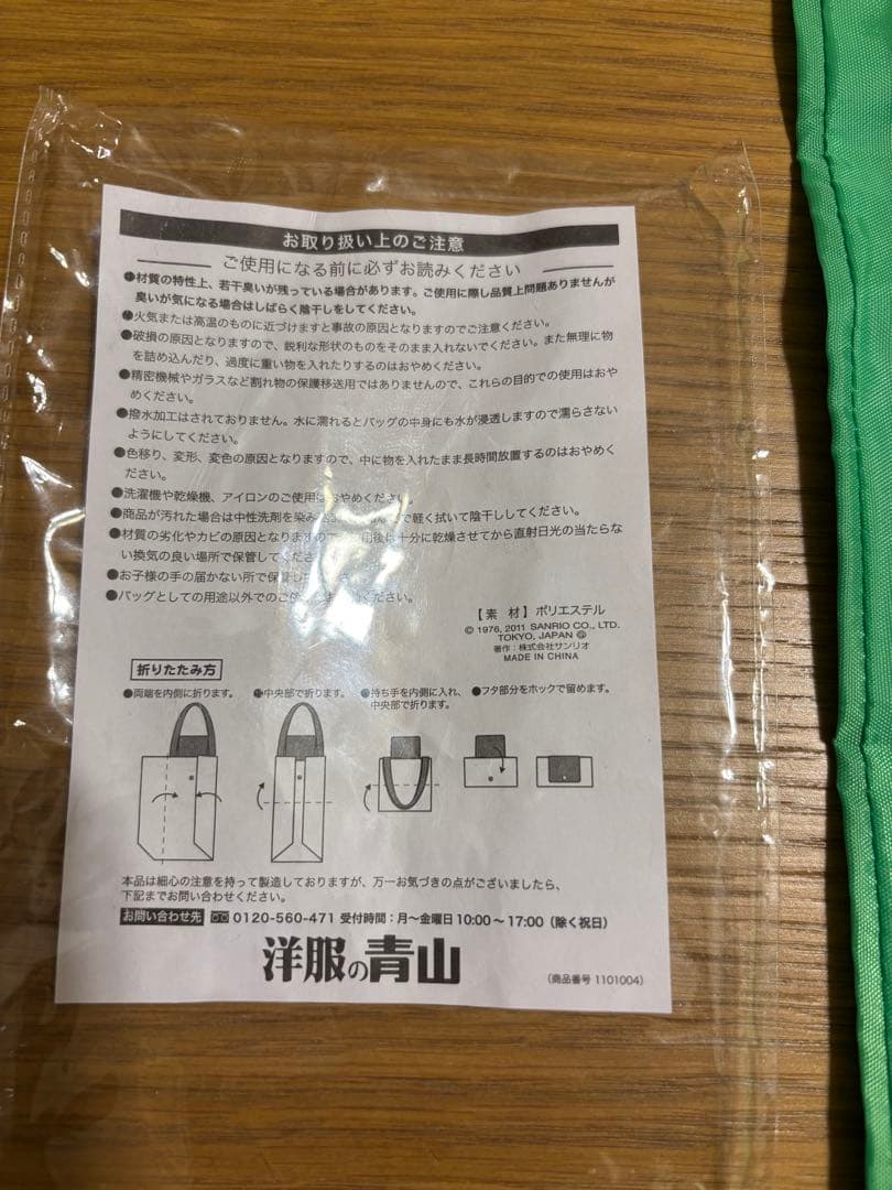 ②ハローキティ グリーン トートバッグ エコバッグ/新品未使用