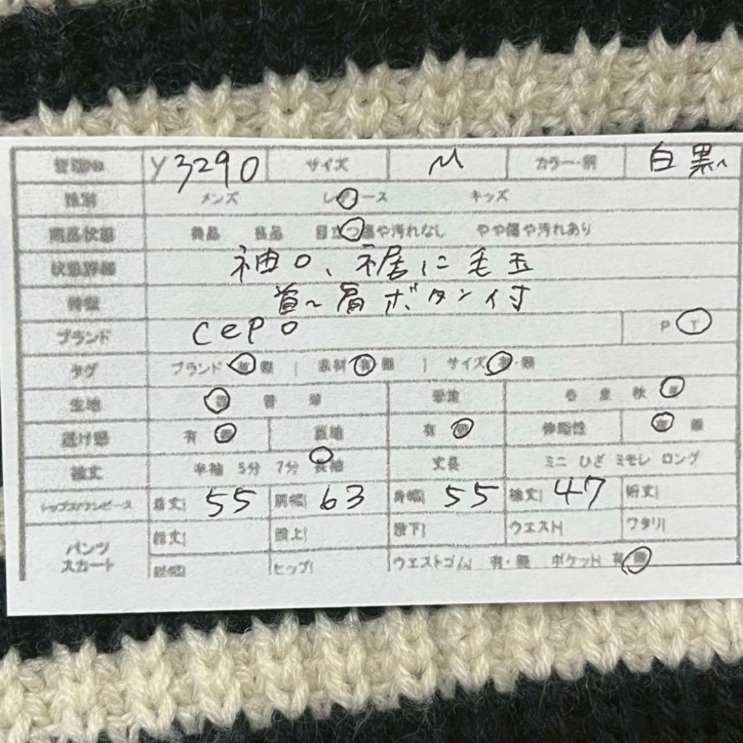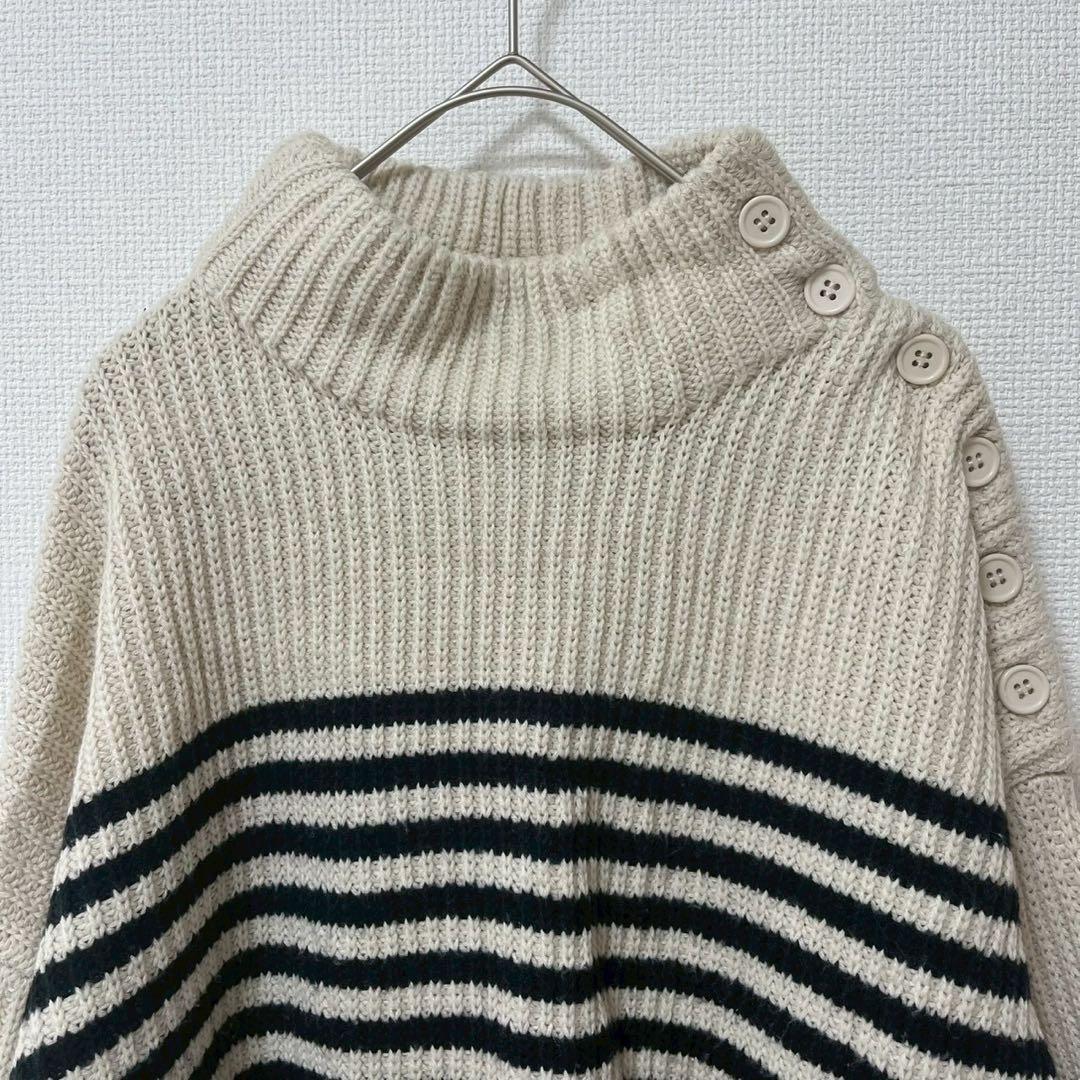 【セポ】cepo ハイネックニットセーター ボタンデザイン ボーダー 白黒 M