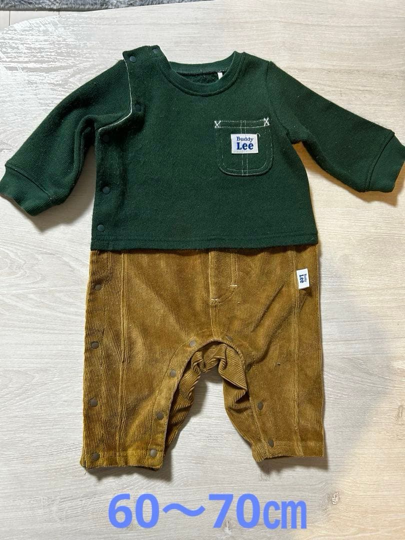 Buddy Lee ロンパース 60〜70㎝ダークグリーン/ブラウン 裏起毛