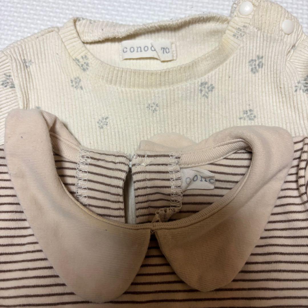 conoco 70サイズ 長袖Tシャツ 2枚セット 花柄リブ 衿つきボーダー