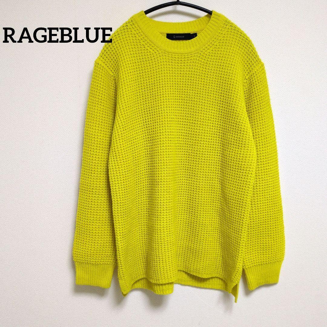 9-5【レイジブルー】RAGEBLUE 毛混ニット クルーネック イエロー