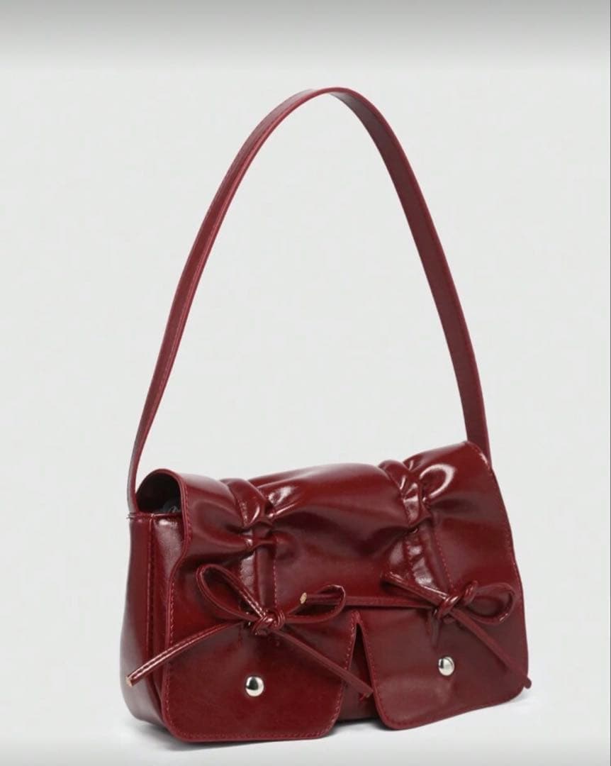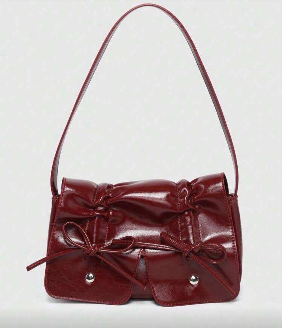SHEIN SIAヴィンテージプリーツリボンアンゴラスエードショルダーバッグ
