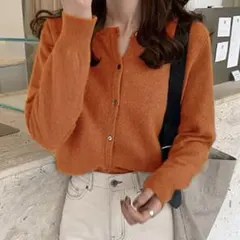 Rough vif 長袖 カーディガン オレンジレッド レディース M