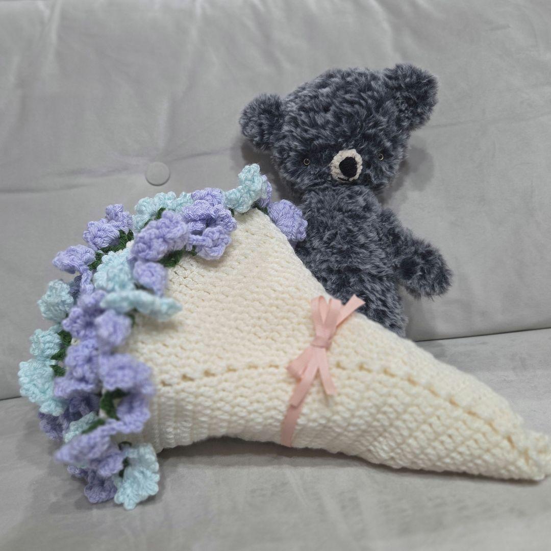 【完成品】花束ブランケット 紫 水色