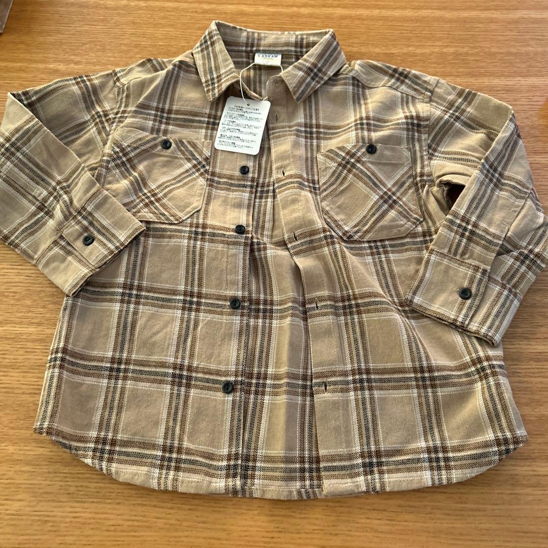 新品タグ付き LAGKAW 長袖シャツ 120 ベージュ チェック