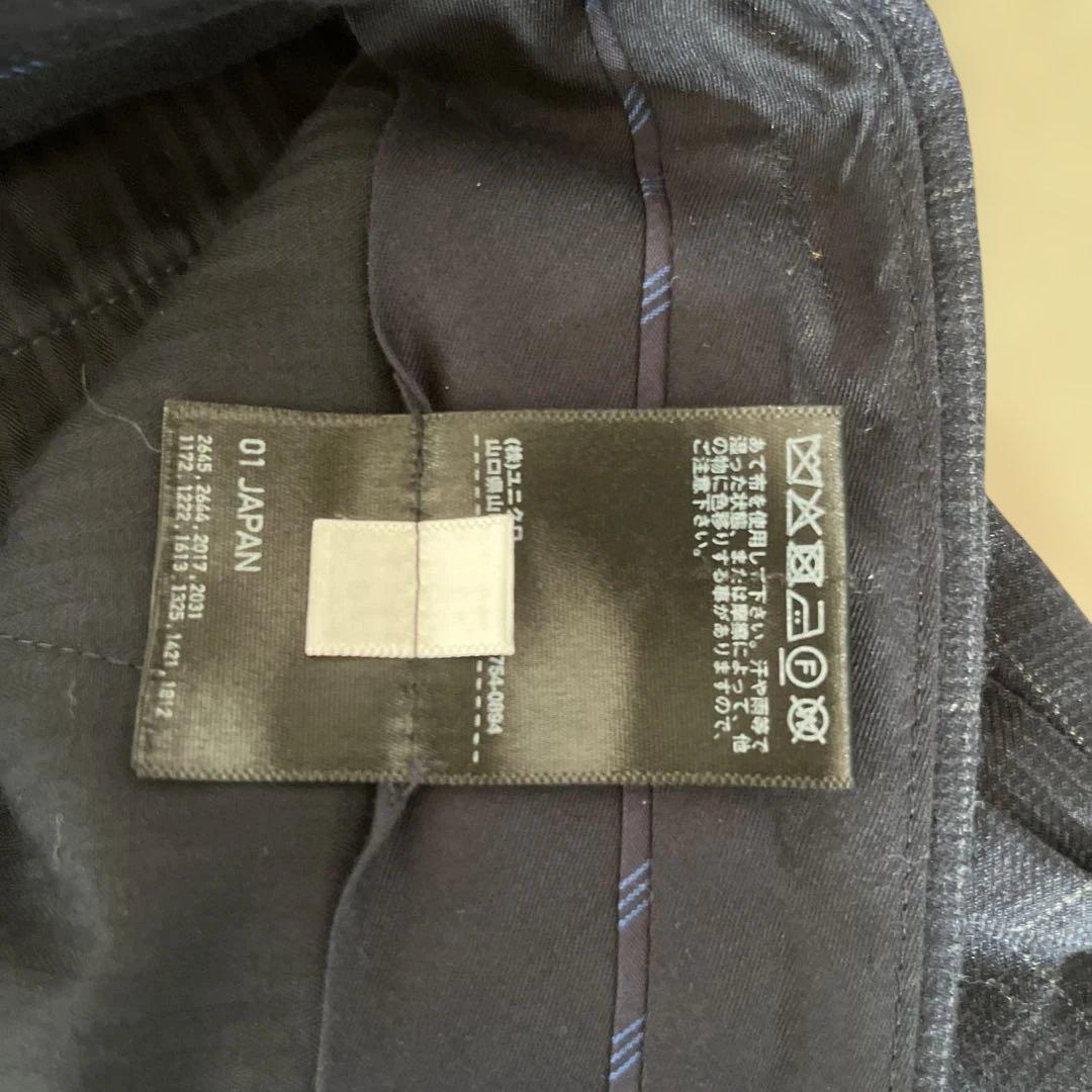 ユニクロ UNIQLO センタープレス入りスラックス 紺チェック ウエスト88