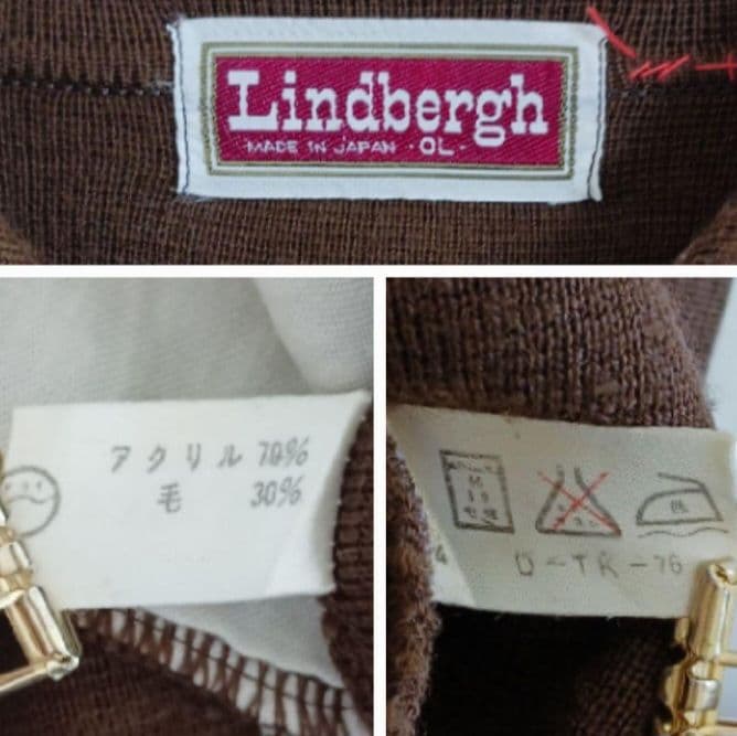 【リンドバーグ】襟付きフルジップ長袖ニットカーディガン レトロ 日本製 ウール混
